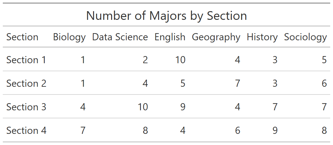 ss_majors_sect_tblStep 2: Pivot wider for a nicer-looking table.