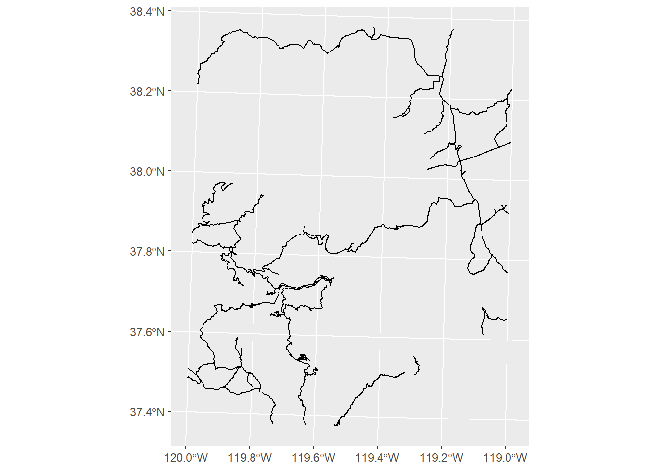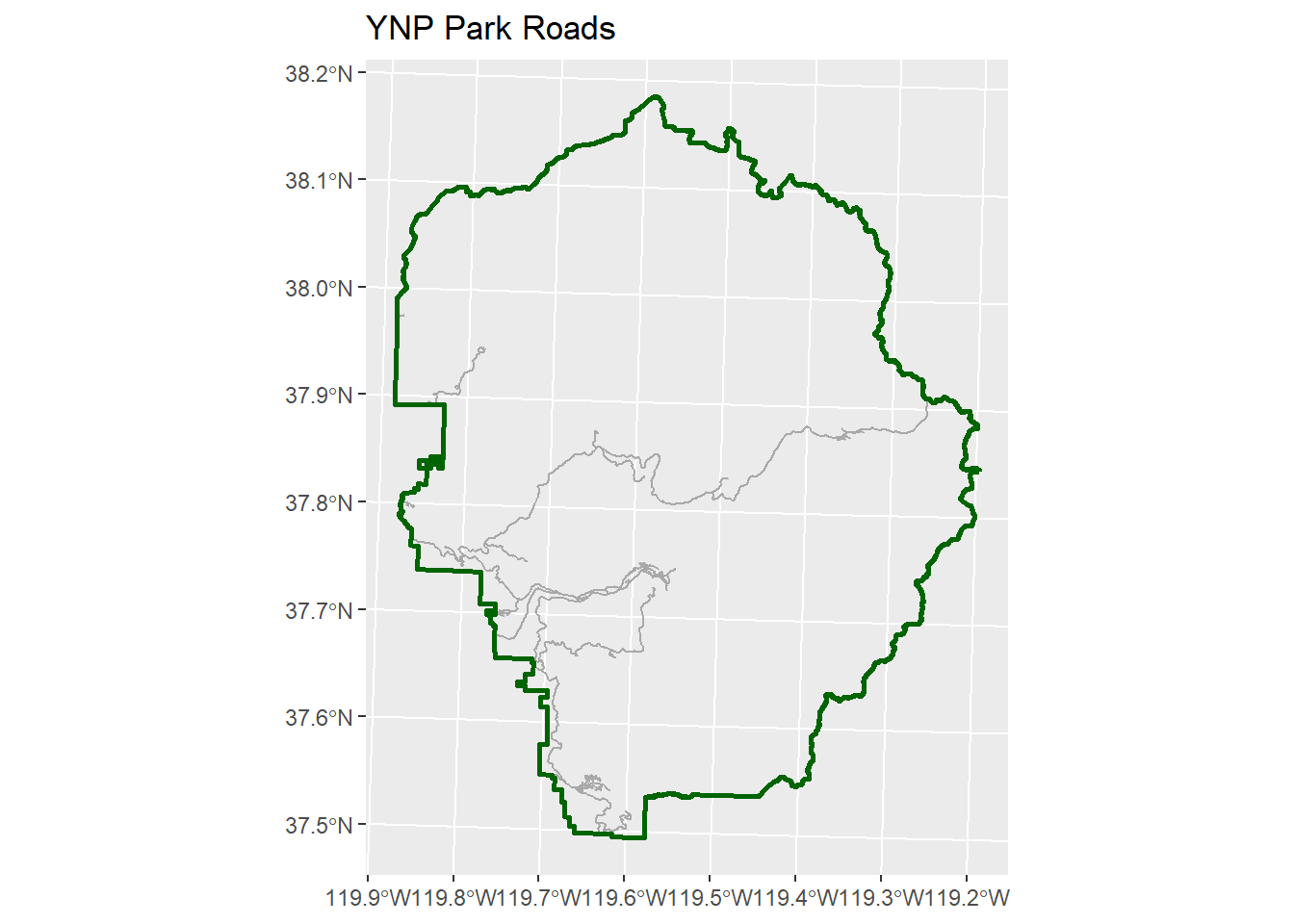 geom_sf(data = yose_roads_park_utm11n, color = "darkgray") +