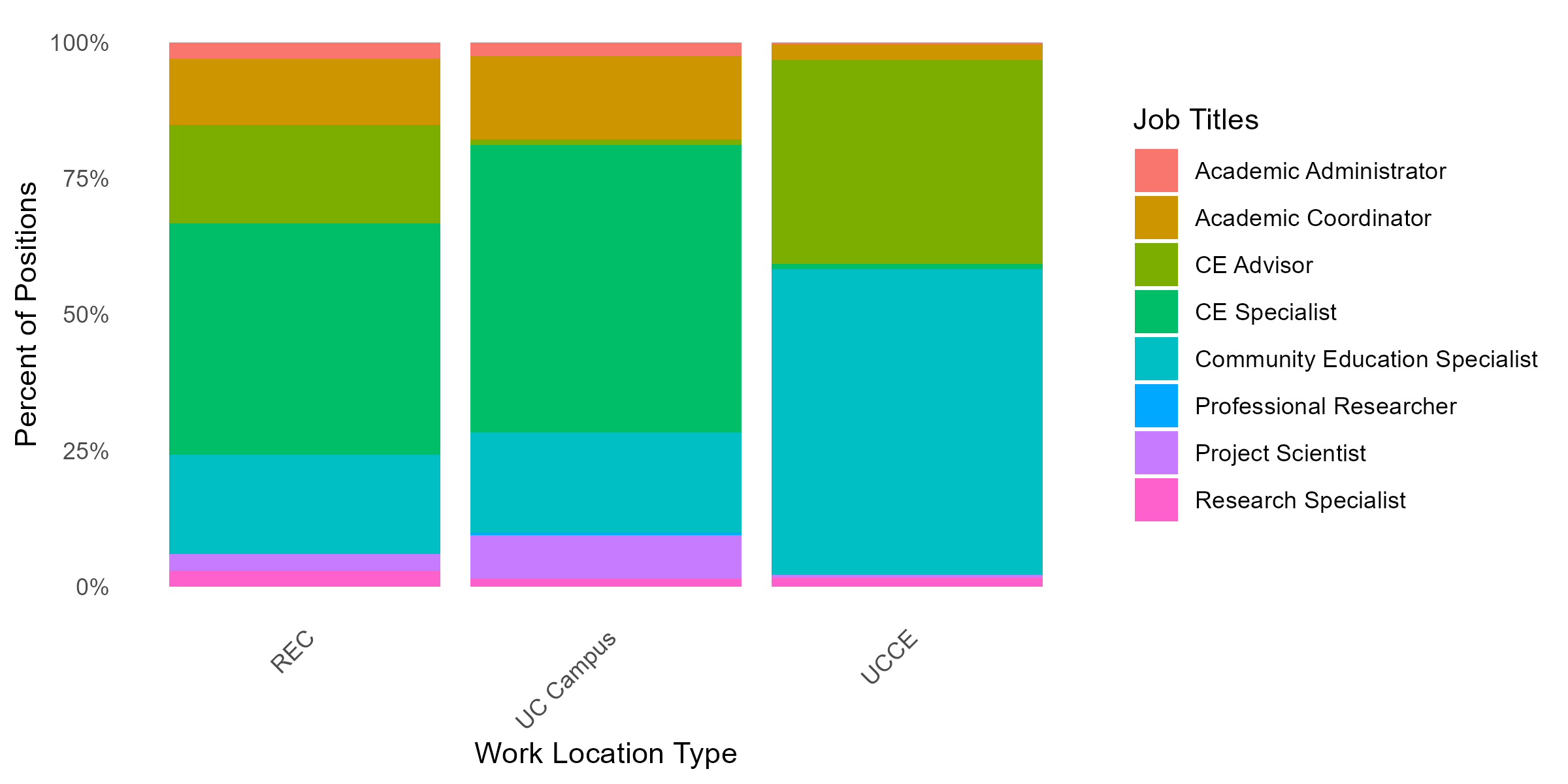 Stacked Percentage of UC ANR Position Titles by Work Location