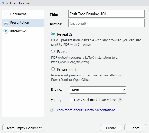 Quarto can generate presentations in 3 formats: