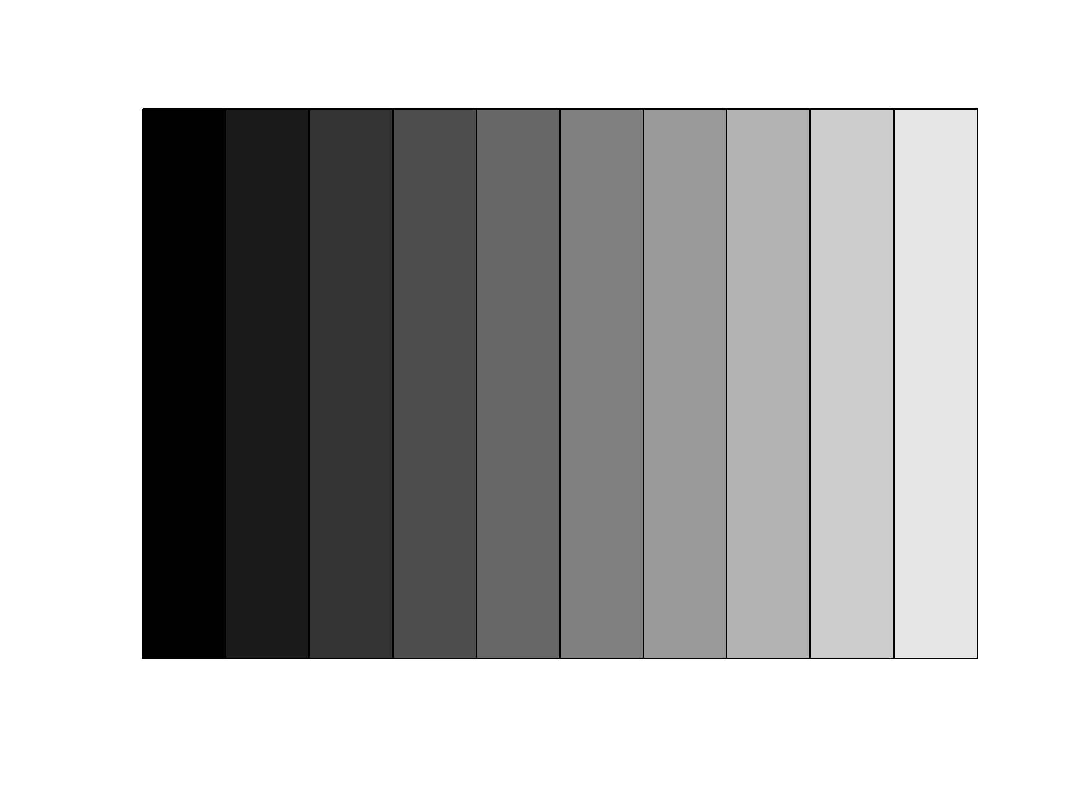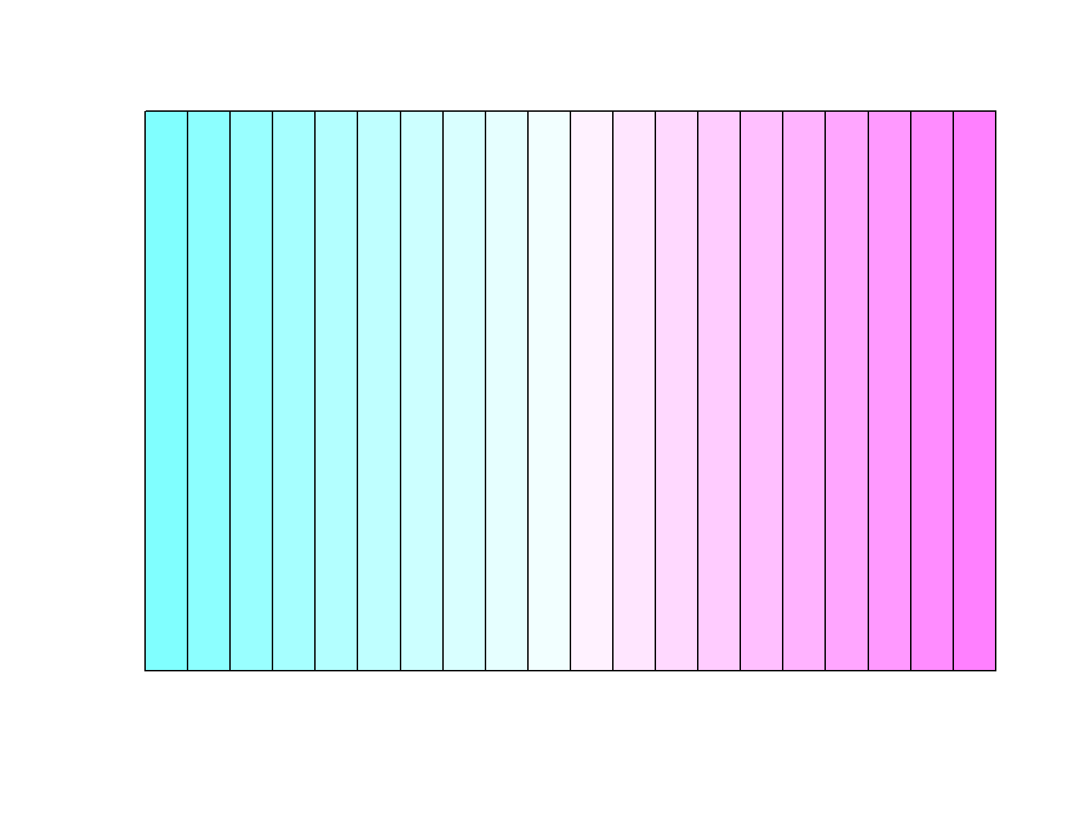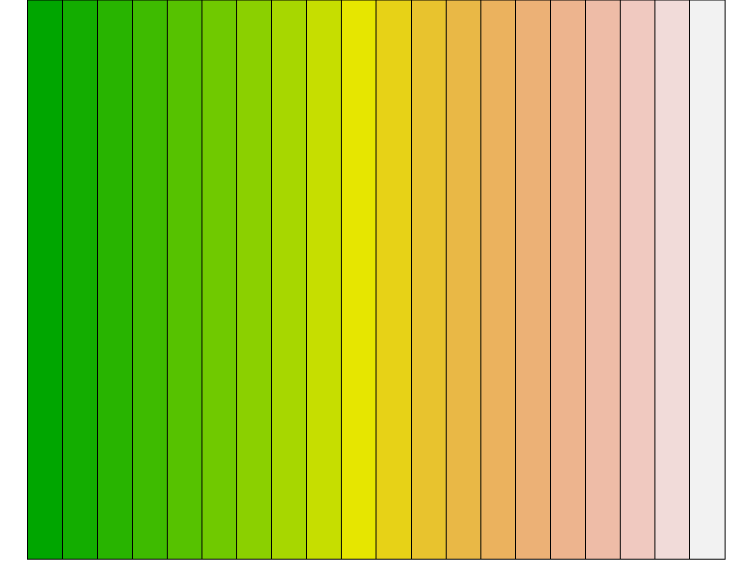 barplot(height=rep(1,20), col=terrain.colors(20), axes=FALSE, space=0)