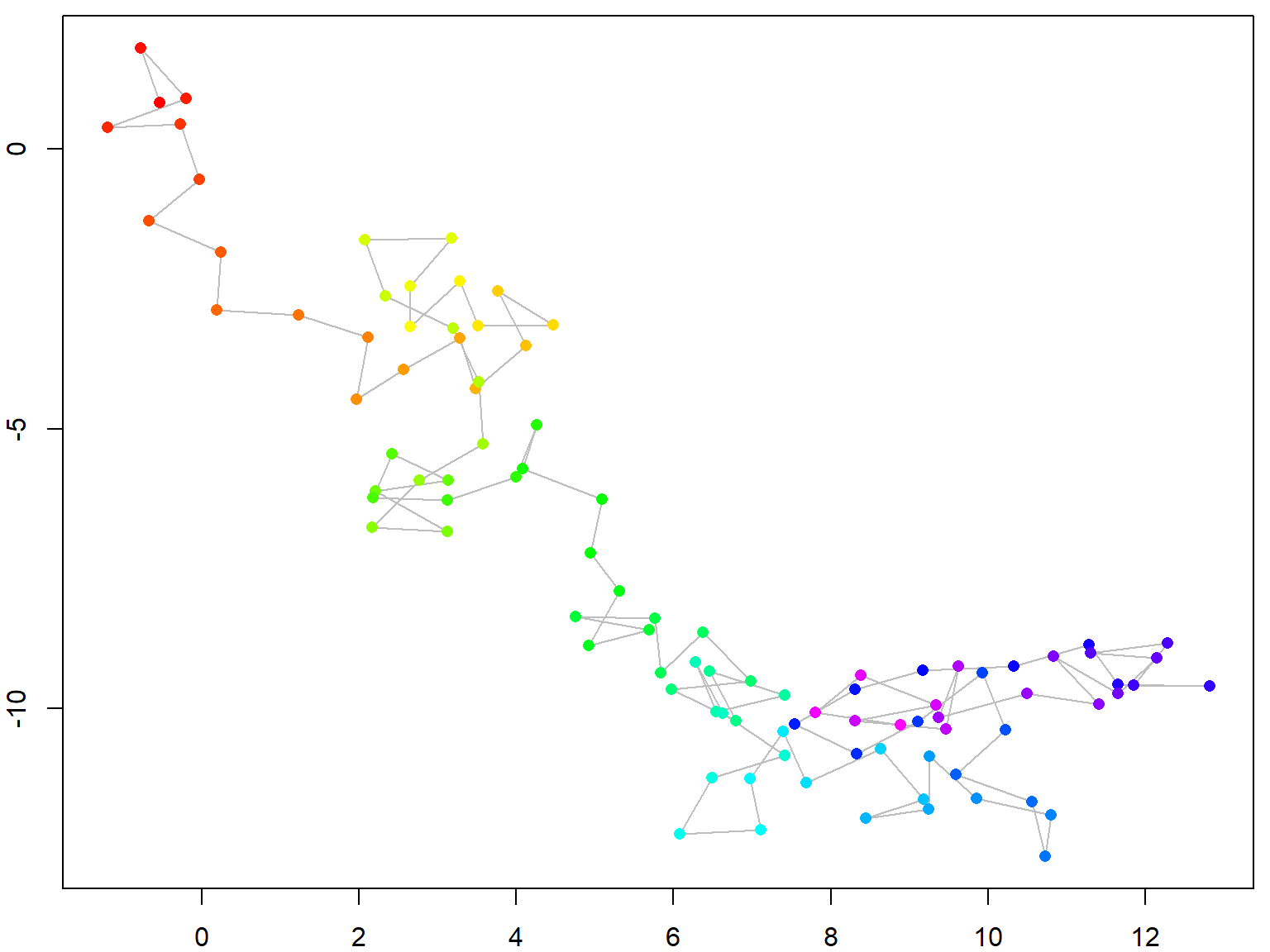 Plot a ‘random walk’ using a color ramp, to help the viewer connect the dots.