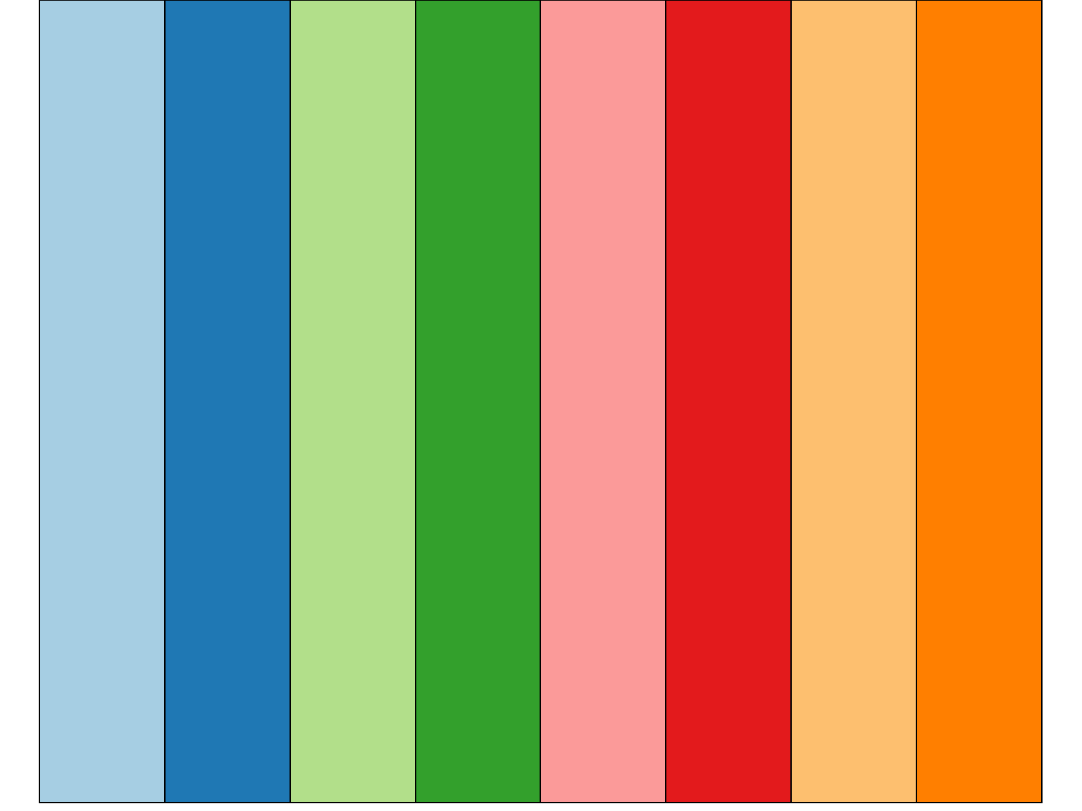 barplot(height=rep(1,8), col=colors_qual_paired, axes=FALSE, space=0)
