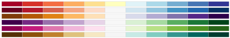 RColorBrewer has eight color palettes designed for categorical or qualitative data. These palettes have 8-12 colors each. For example the ‘Paired’ palette looks like: