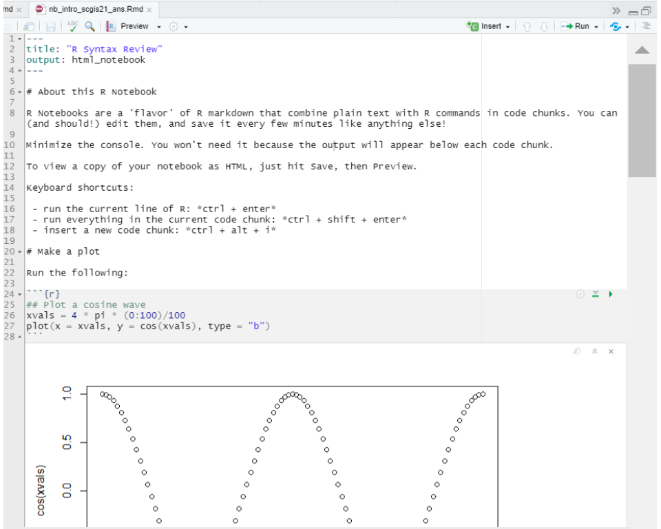 all subsequent) plot() statementsR Notebooks are written in “R Markdown”, which combines text and R code.