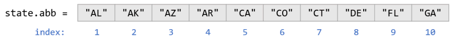 ## [1] "AL" "AK" "AZ" "AR" "CA" "CO" "CT" "DE" "FL" "GA" "HI" "ID" "IL" "IN" "IA" "KS" "KY" "LA" "ME" "MD" "MA" "MI" "MN" "MS" "MO" "MT"