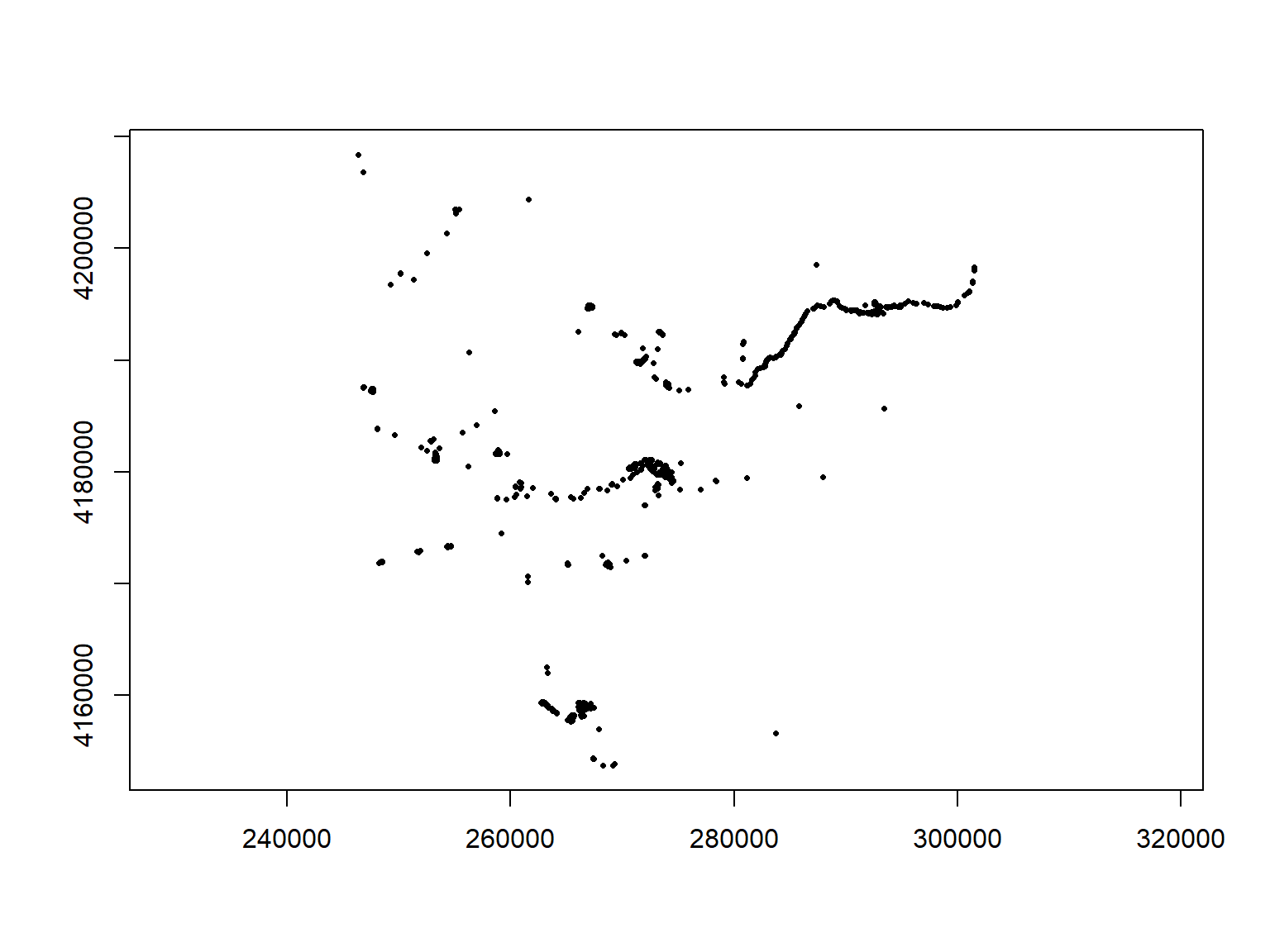 plot(yose_poi_utm |> st_geometry(), pch=16, asp=1, cex=0.5, axes=TRUE)## Reading layer `yose_poi' from data source `D:\Workshops\R-Spatial\rspatial_mod\outputs\rspatial_scgis23\exercises\data' using driver `ESRI Shapefile'