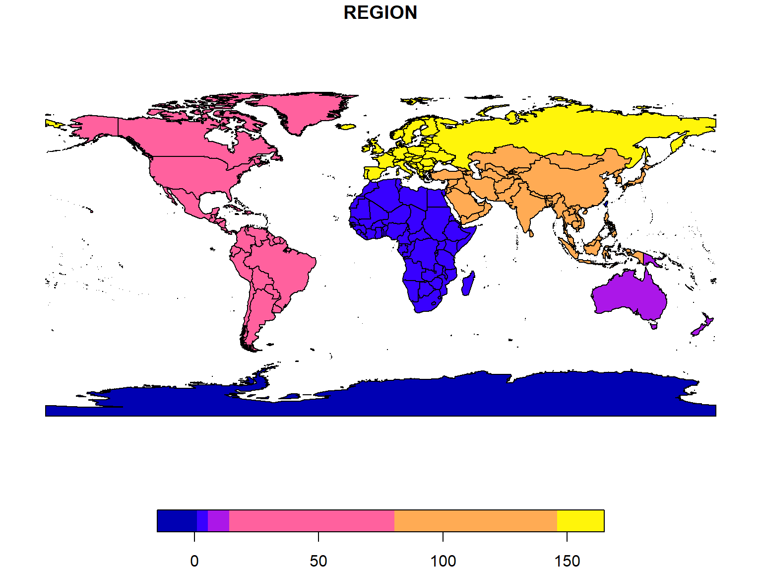 plot(wrld_simpl_sf["REGION"])## [1] "SpatialPolygonsDataFrame"